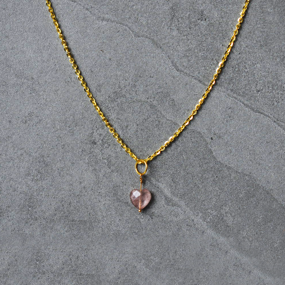 - Dainty Strawberry Quartz Heart Pendant